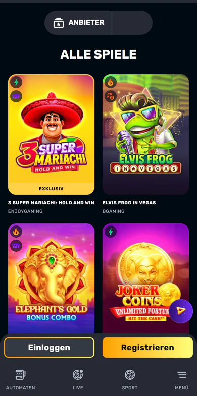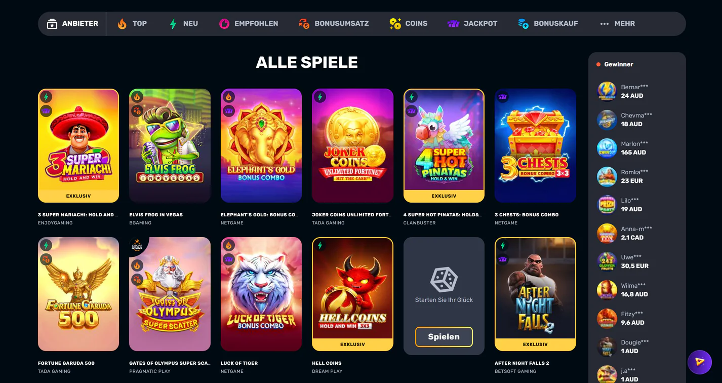 | 6.000+ Spieltitel von 48+ Anbietern | Kein klassischer Bonus ohne Einzahlung |
